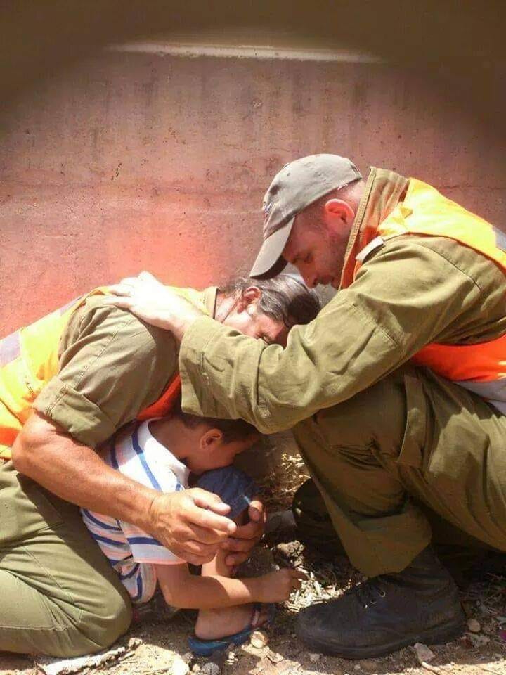In the midst of sirens sounding in the city of Rehovot, a photo was taken that is one of the most popular in Israeli social media today. The photo (see attached) was taken by Li-Aviv Dadon, age 34. While she was traveling together with her husband, their infant child and their 4-year-old son, Yair, they suddenly heard a siren. The parents in a panic quickly started to take the baby out, but the other car door got stuck and Yair could not get out. The terrified mother finally succeeded in pulling the door open, and Yair ran out to hide, alone. The parents managed to hide with the baby. Then, out of the corner of her eye, the mother,saw a sight that caused her tears to flow. Two soldiers, who passed by and were also looking for shelter, saw young Yair and covered him with their bodies